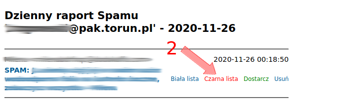 Wybierz Czarna lista (2) jeżeli uznasz wiadomość za SPAM.