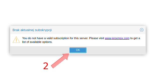 Krok 2. Jeżeli pojawi się informacja o braku subskrypcji, należy kliknąć OK (5):